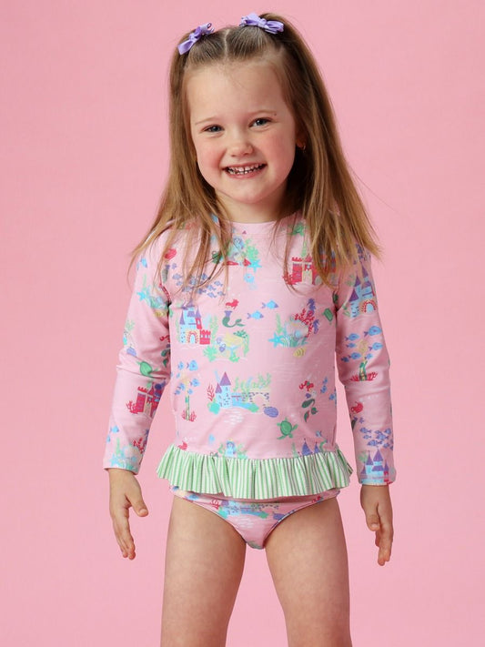 Atlantis Mermaids Long Sleeve Rash Guard 2-Piece Swimsuit