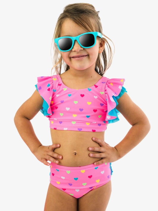 Neon Pink Colorful Hearts Butterfly Tankini 2-Piece Swimsuit