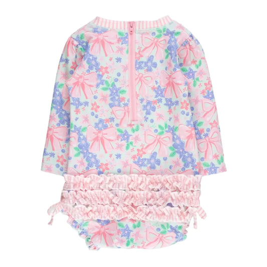 Berries & Bows Long Sleeve One Piece Rash Guard Swimsuit