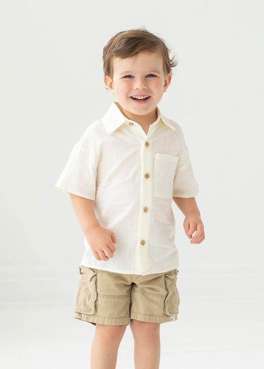 Navy Gingham Button Down Polo Muslin With Polo Short French Terry