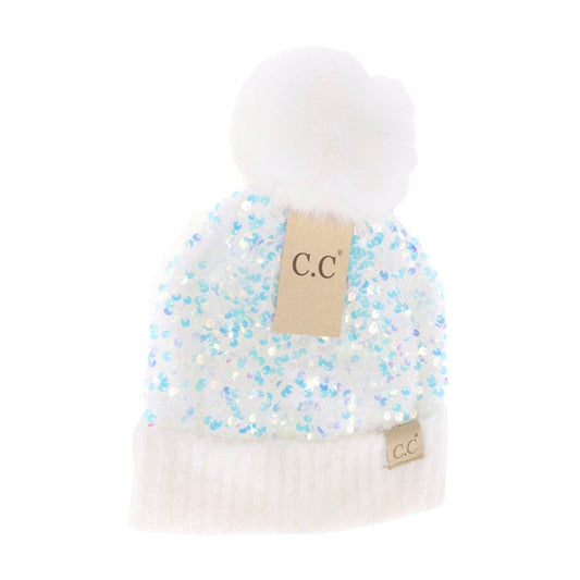 Toddler & Kids Cluster Sequin Fuzzy Lined Faux Fur Pom Beanie