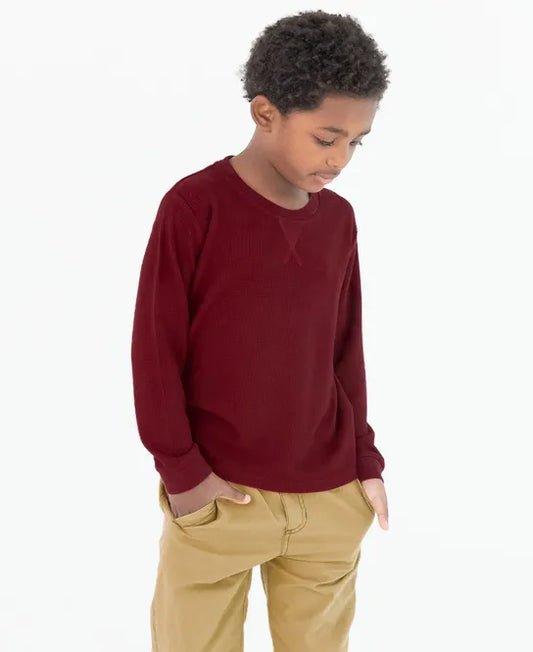 Waffle Knit Long Sleeve Crew Neck Shirt