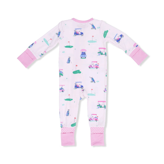 Pink Ponies 2 Way Ruffle Back Zipper Footie