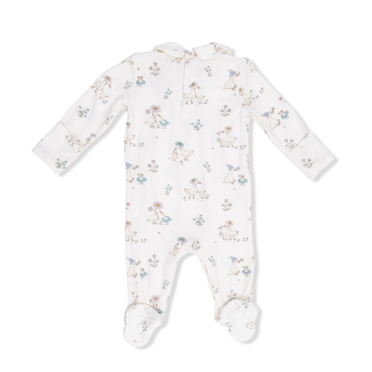Flower Ducklings Smocked Peter Pan Snap Footie