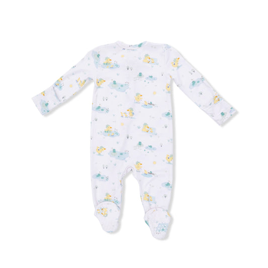 Vintage Spring Ducklings Green 2 Way Zipper Footie
