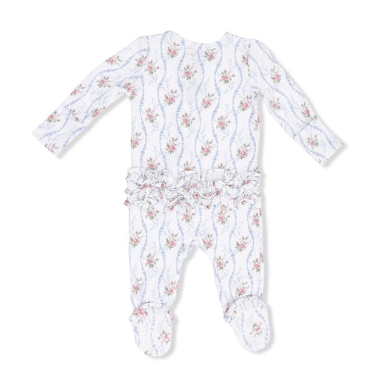 Ashley Rose Floral 2 Way Ruffle Back Zipper Footie