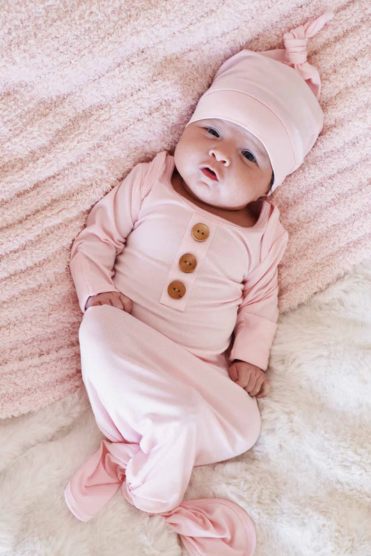 Baby Pink Newborn Baby Knot Gown & Hat Set