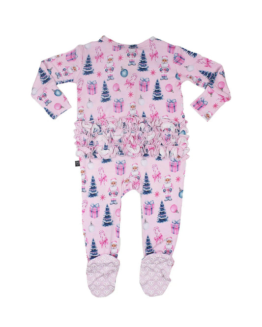 Cowgirl Christmas 2 Way Zipper Ruffle Back Footie