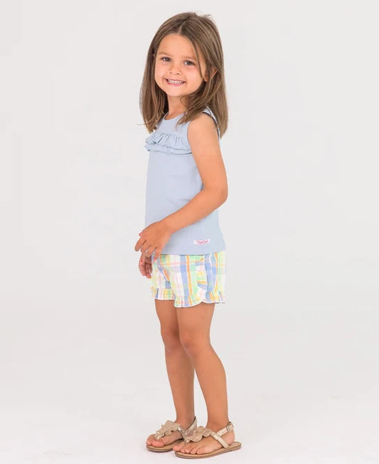 Windsurfer Blue Knit Ruffle Trim Tank