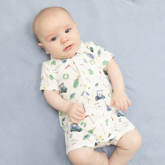 Golfing Teddy Bears Shortie 2 Way Zipper Romper