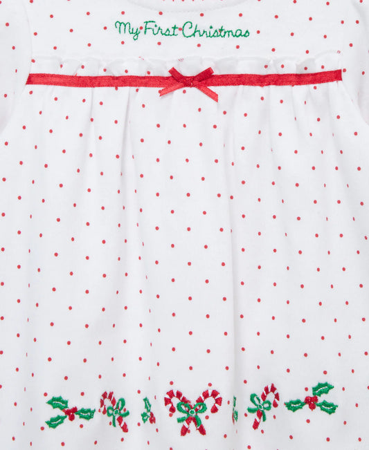 Candy Cane Bows 2 Way Zipper Ruffle Back Footie