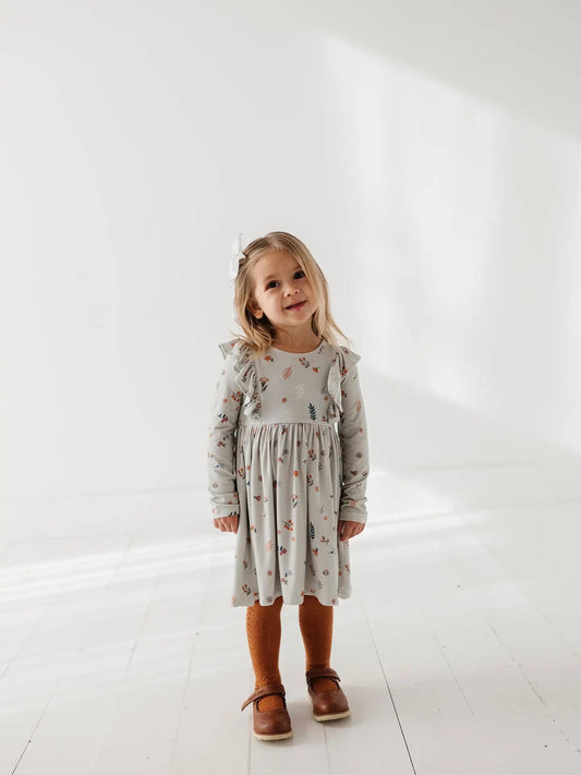 Botanical Long Sleeve Ruffle Dress