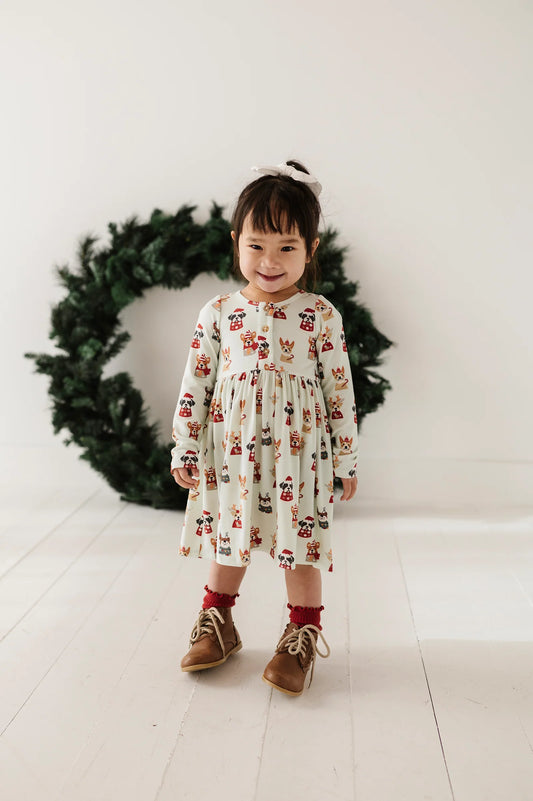 Christmas Dogs Long Sleeve Henley Dress