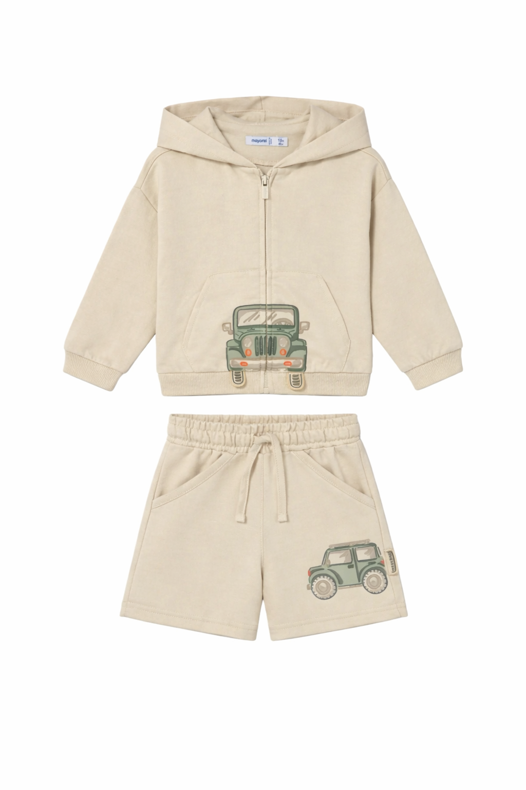 This set features a comfy cream hoodie with atv graphic & coordinating shorts.