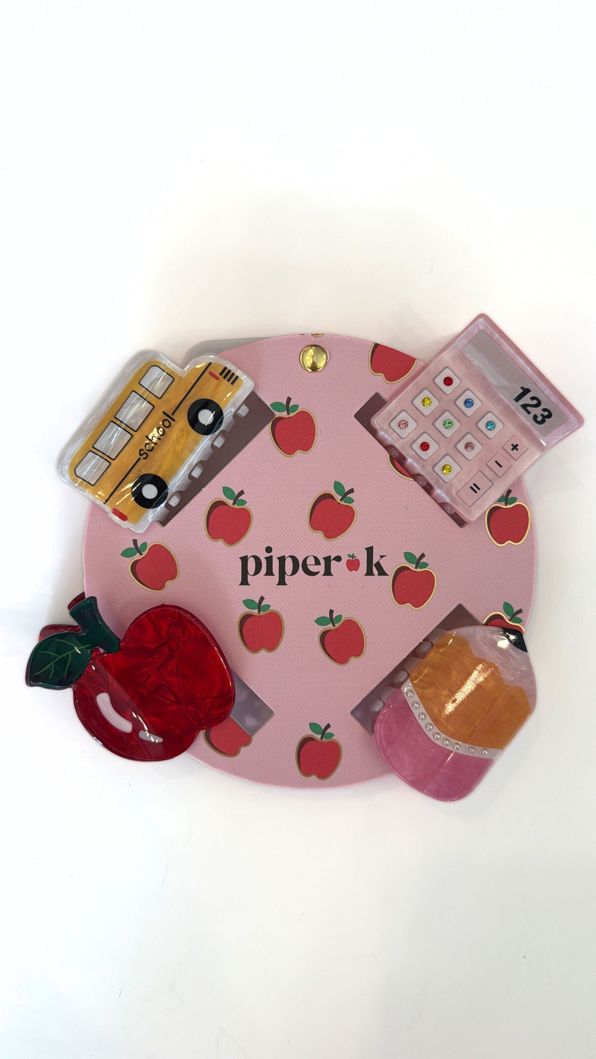 Get ready for back to school with these adorable claw clips. Set includes apple, school bus, calculator, & pencil claw clips!