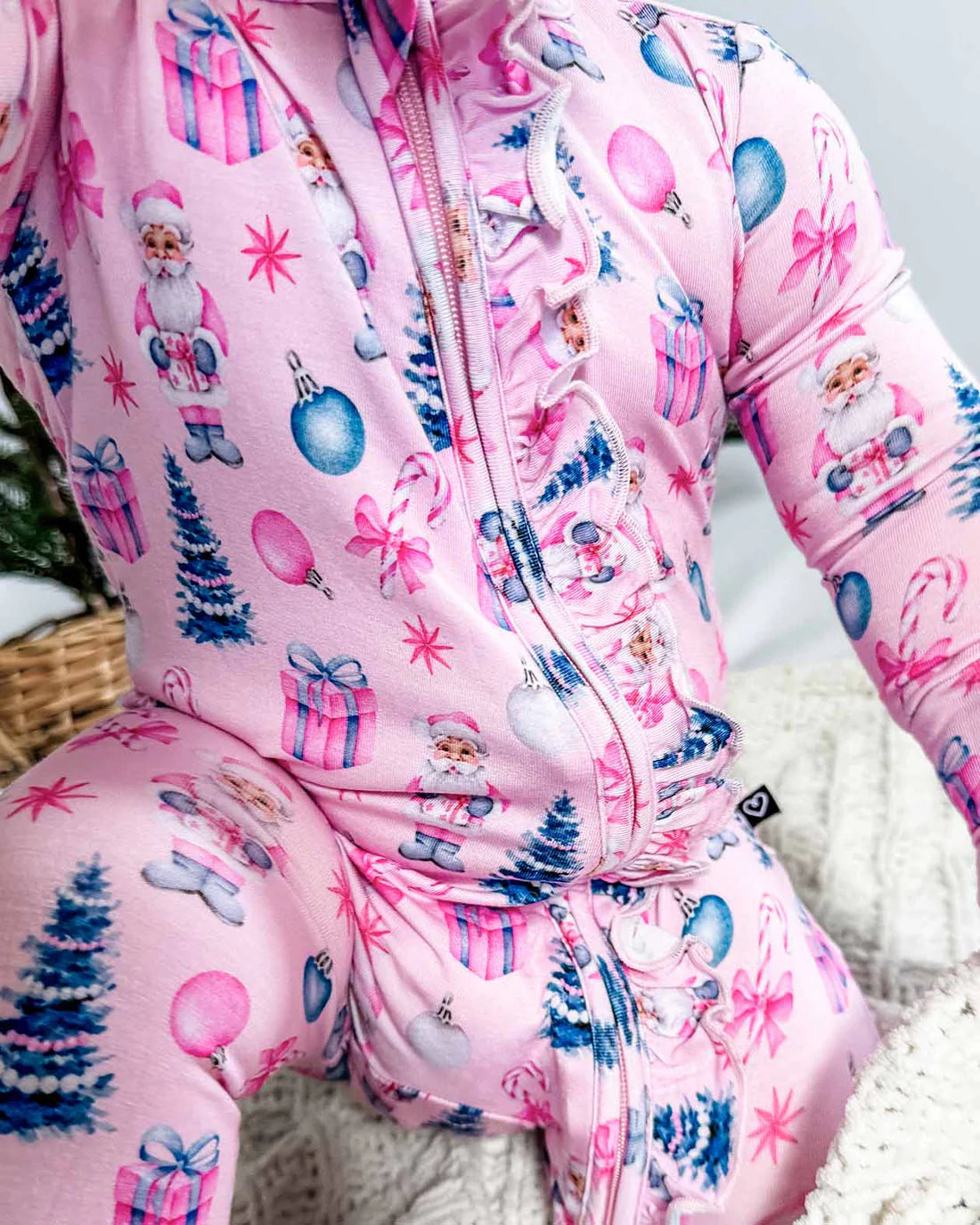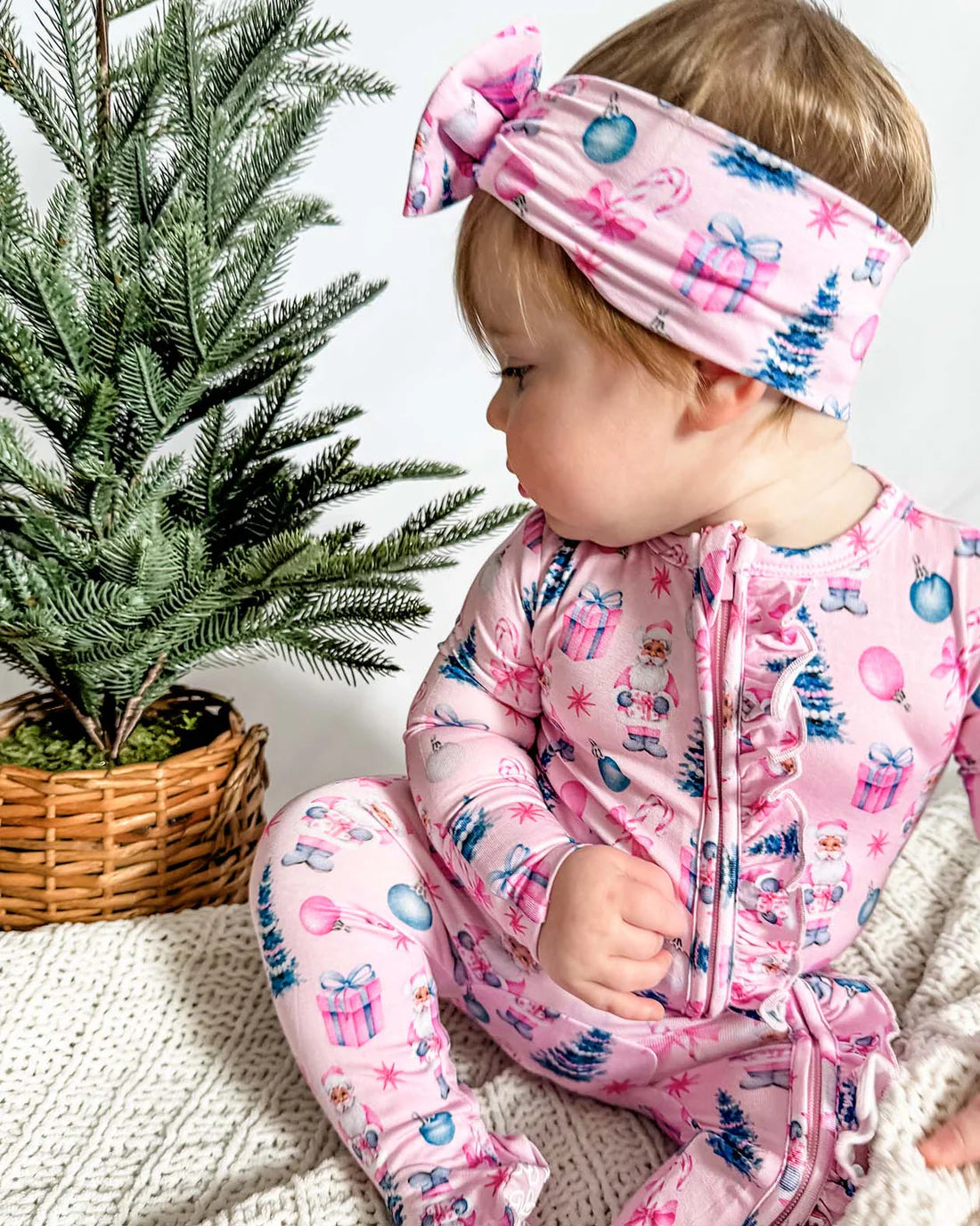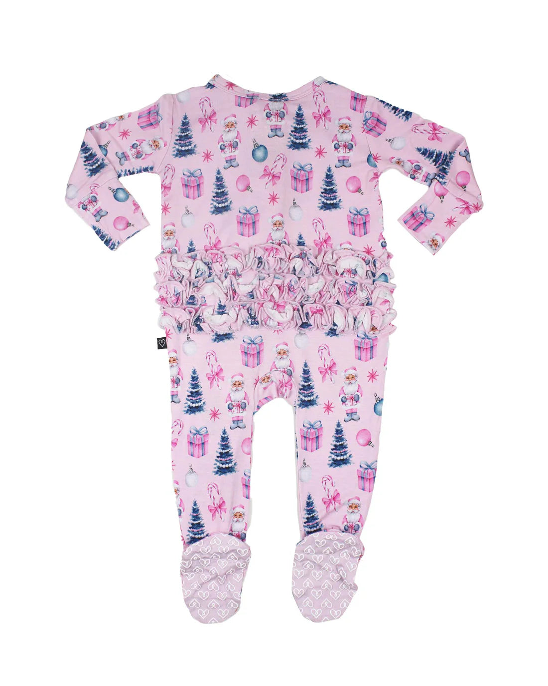 Our signature viscose from bamboo ruffled footie will be your favorite go-to. With a ruffle down the front and ruffles on their bottom, our footie can be adorable jammies or your babe's outfit for the day! Add a matching headband and you're off. Our double zipper option makes diaper changes simple at all times of the day (and night). Zip from top or bottom without undressing your babe. Footie grips in Lev's signature hearts, cuffs on newborn and 0-3m to avoid scratching their sweet faces and our snug fit will ensure the best dressed and most snuggly babe ever!