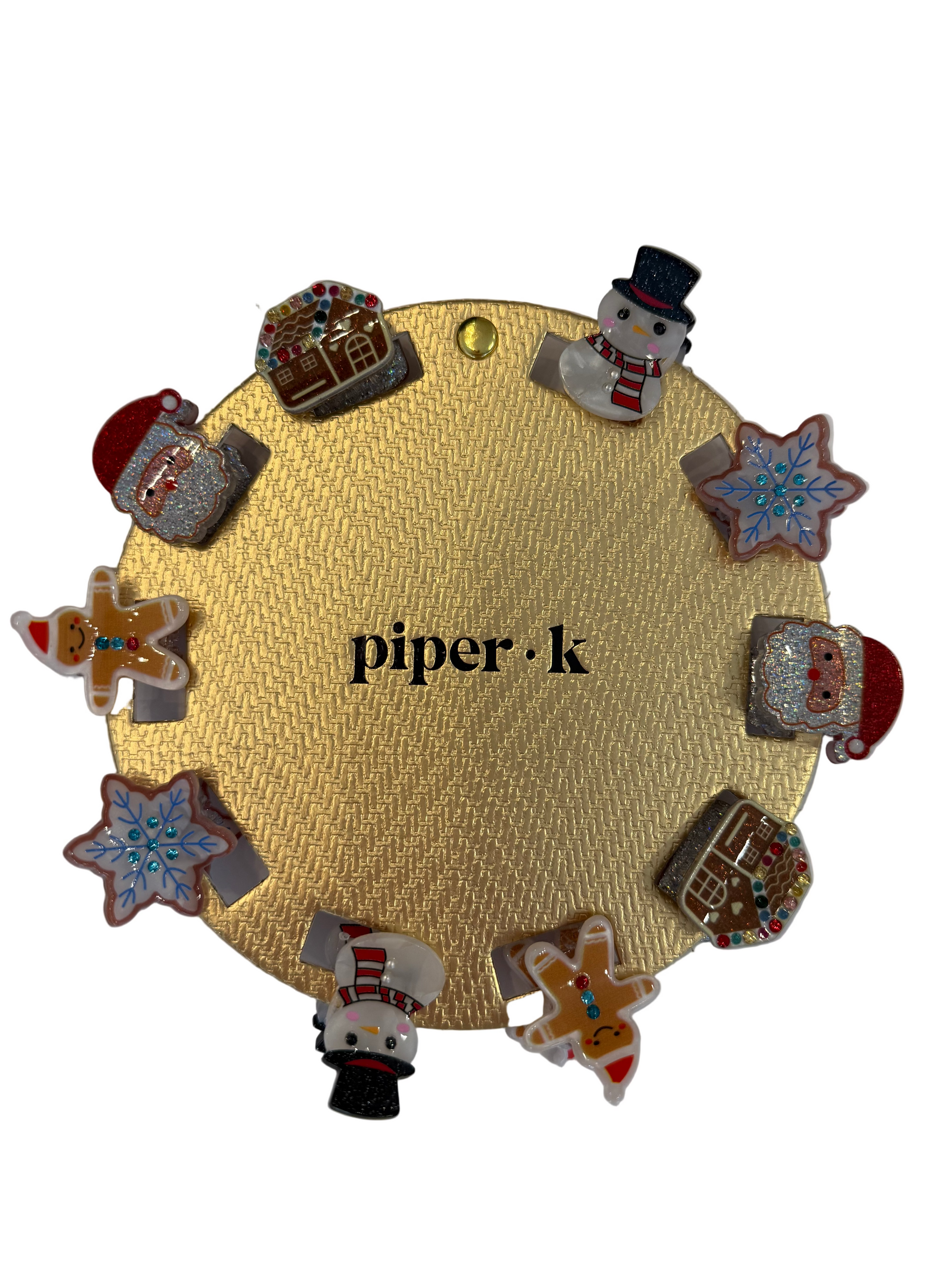 Get ready for Christmas with these adorable mini claw clips. Set includes 2 Santa, 2 Gingerbread, 2 Snowflake, 2 Gingerbread House, and 2 Snowmen mini claw clips!