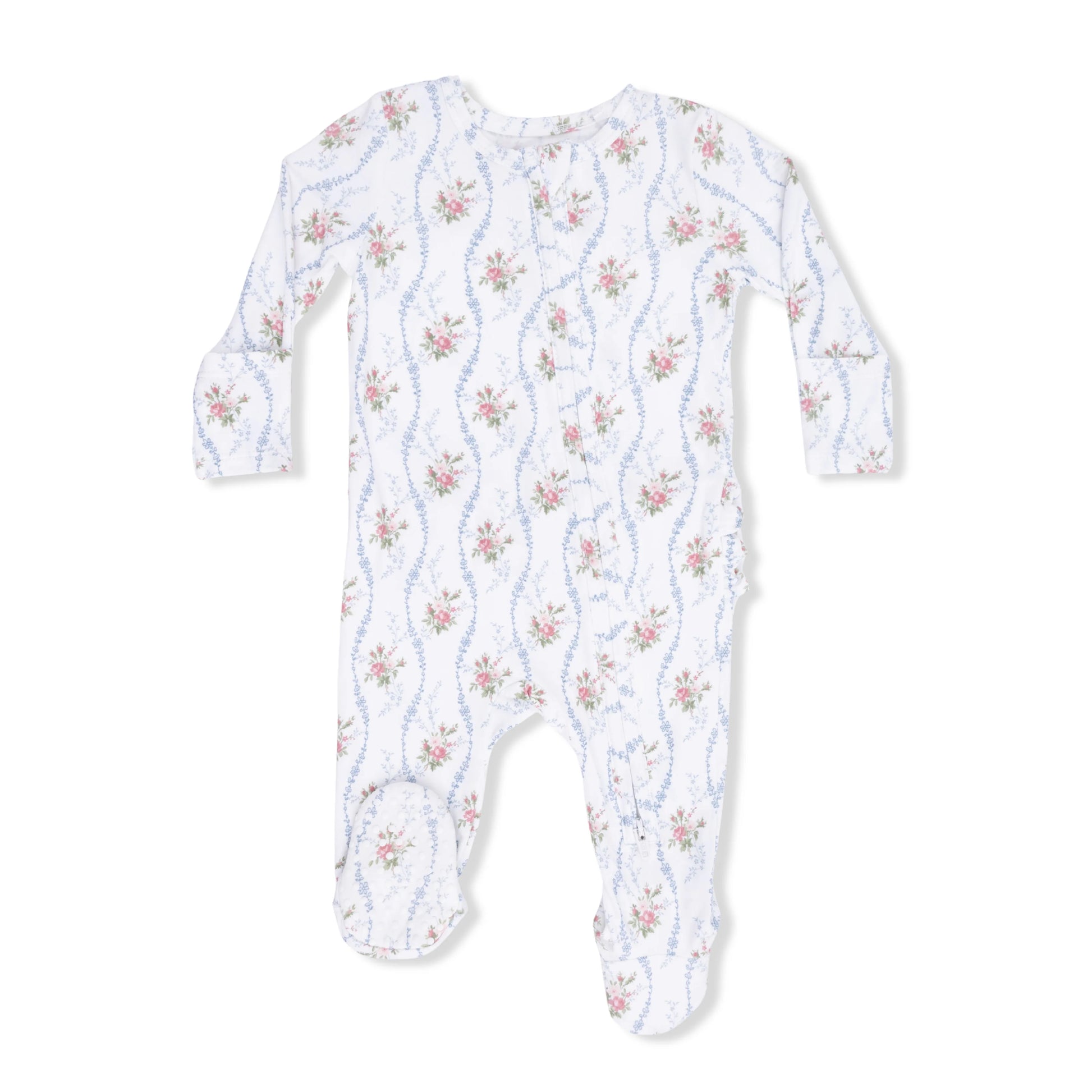 Heirloom Rose Stripe 2 Way Ruffle Back Zipper Footie