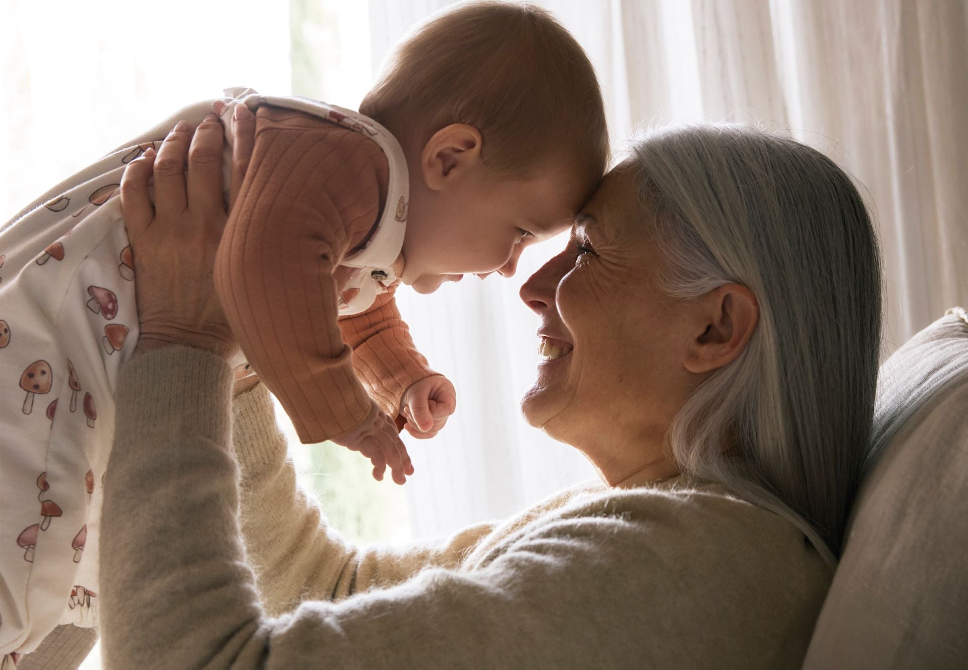 These soft cream overalls feature a mushroom print and a long sleeved ribbed tee in cinnamon.