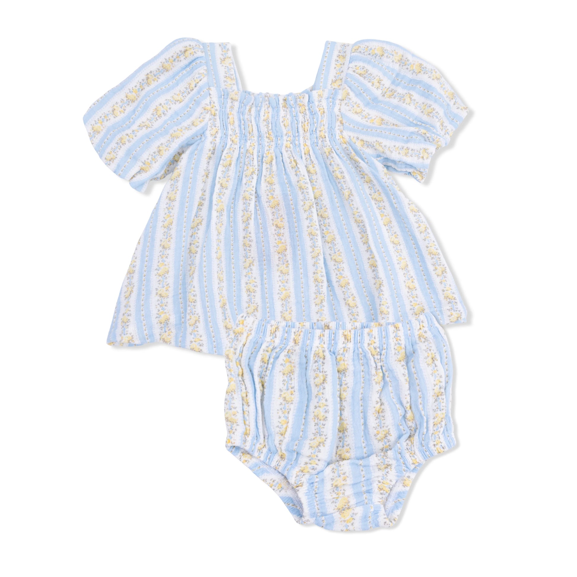 Odalys Floral Stripe Puff Sleeve Baby Doll Dress And Bloomer