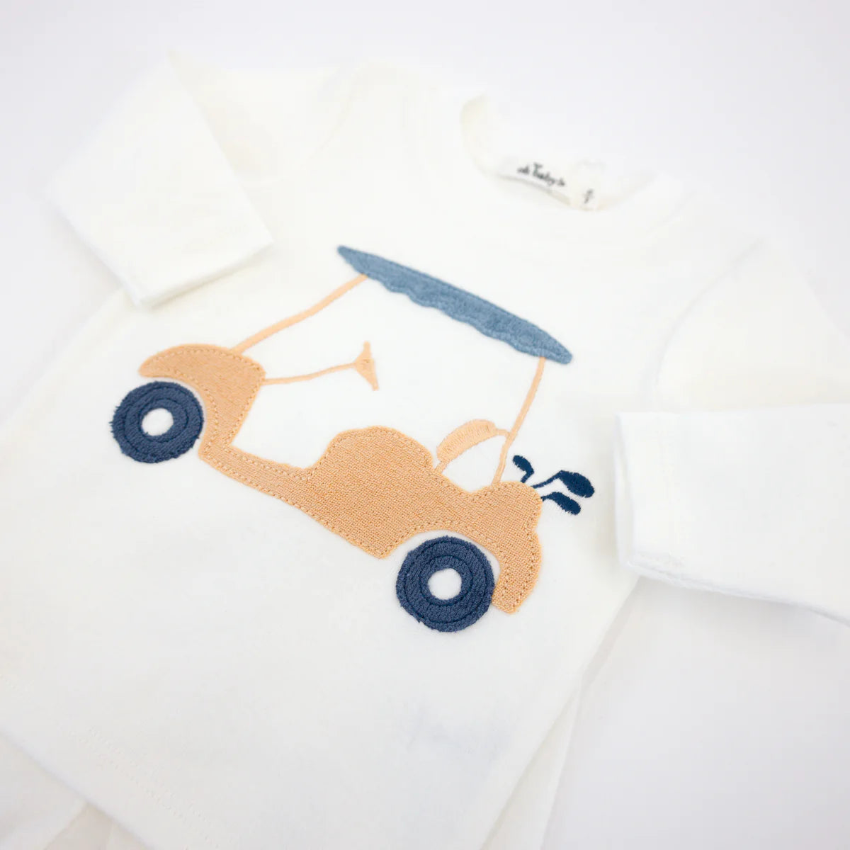 Appliqued golf cart on a soft cotton long sleeve tee with matching pants.