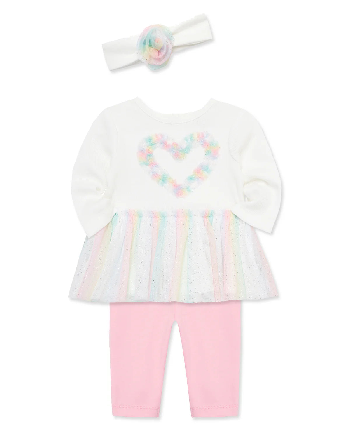 - She will want to twirl allover in this baby girls' tutu set. The set includes a rainbow tutu dress, leggings, and a headband.