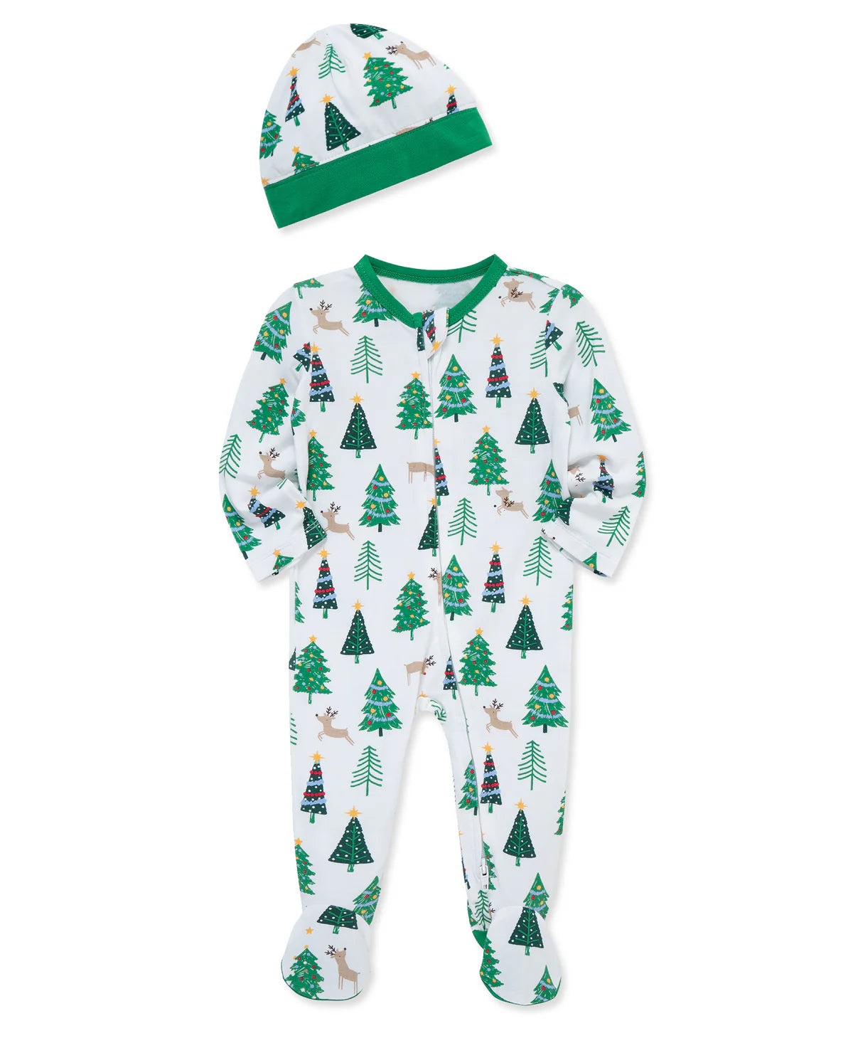 Wrap your little one in cozy comfort with the Trees Footie & Hat Set, crafted from a soft bamboo blend that keeps skin gentle and breathes naturally. Featuring a charming Christmas tree design, this footie and matching hat set provides warmth and festive cheer for newborns up to 9 months. Perfect for holiday snuggles, its stretchy fabric allows easy movement while ensuring all-night comfort and softness. Make holiday moments even more special with this adorable and practical blend of style and care.